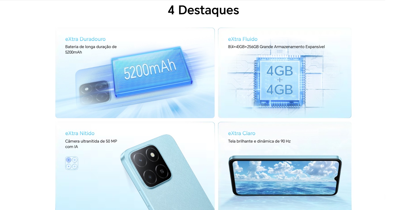 - Câmeras de qualidade para fotos e vídeos incríveis.