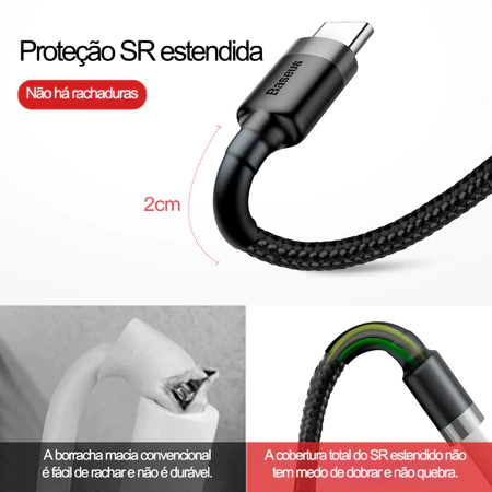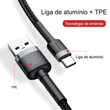 Cabo Rápido Usb Para Tipo- C Baseus Cafule Nylon 3A 1 Metro