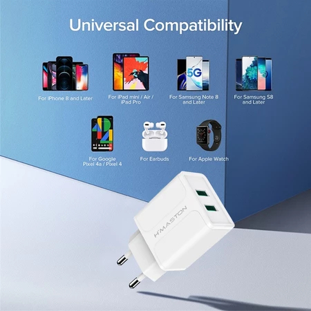 1.Carregador de parede com 2 saídas de carregamento rápido. Leve e compacto, ideal para usar em escritórios e ótimos para viagens.