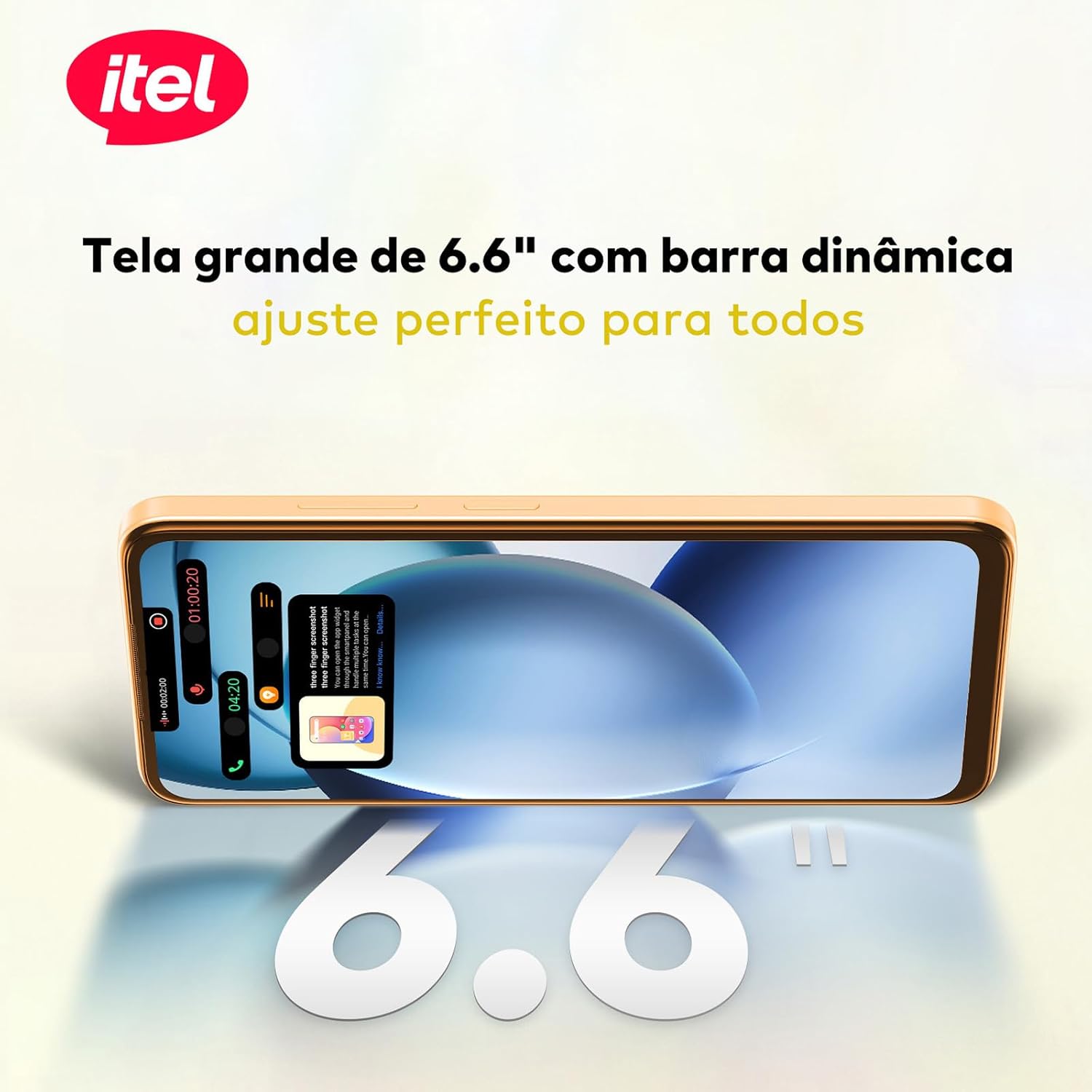 📱 Tela: 6.6” HD