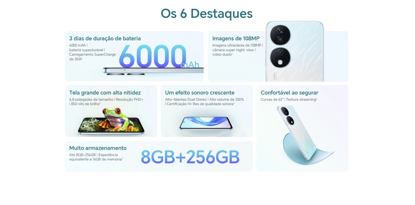 O Smartphone X7B 256GB da Honor combina desempenho, estilo e praticidade para o seu dia a dia.